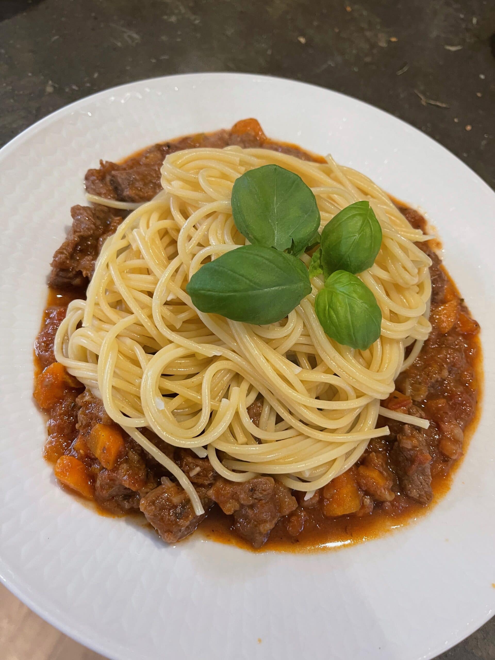 Spaghetti Bolognese with white wine