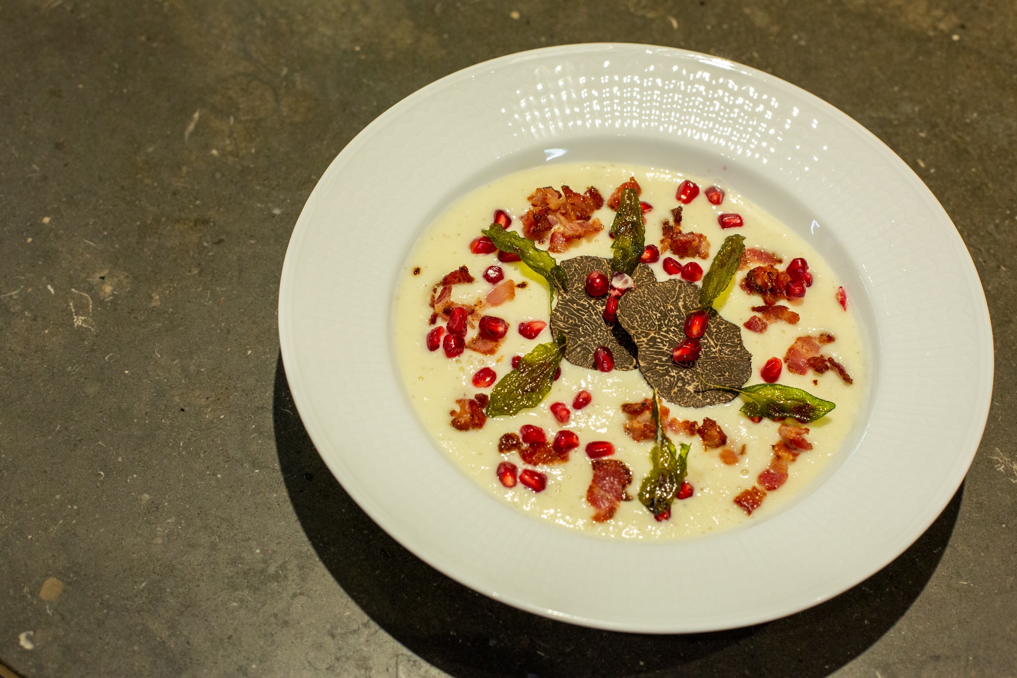 - Garnish with fine slices of truffle and aroma mushrooms.